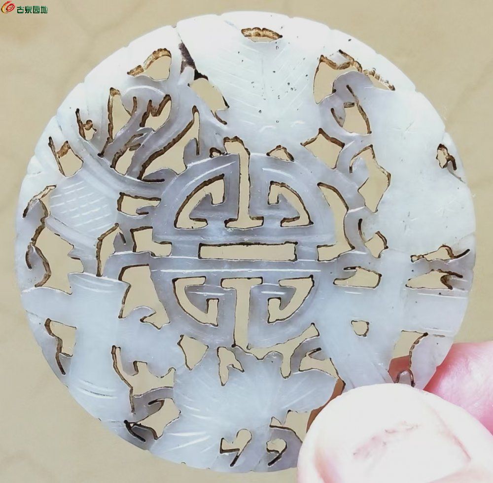 仿明清透雕玉佩,打孔工艺不符,包括侧边线条生硬,人为做旧不自然。