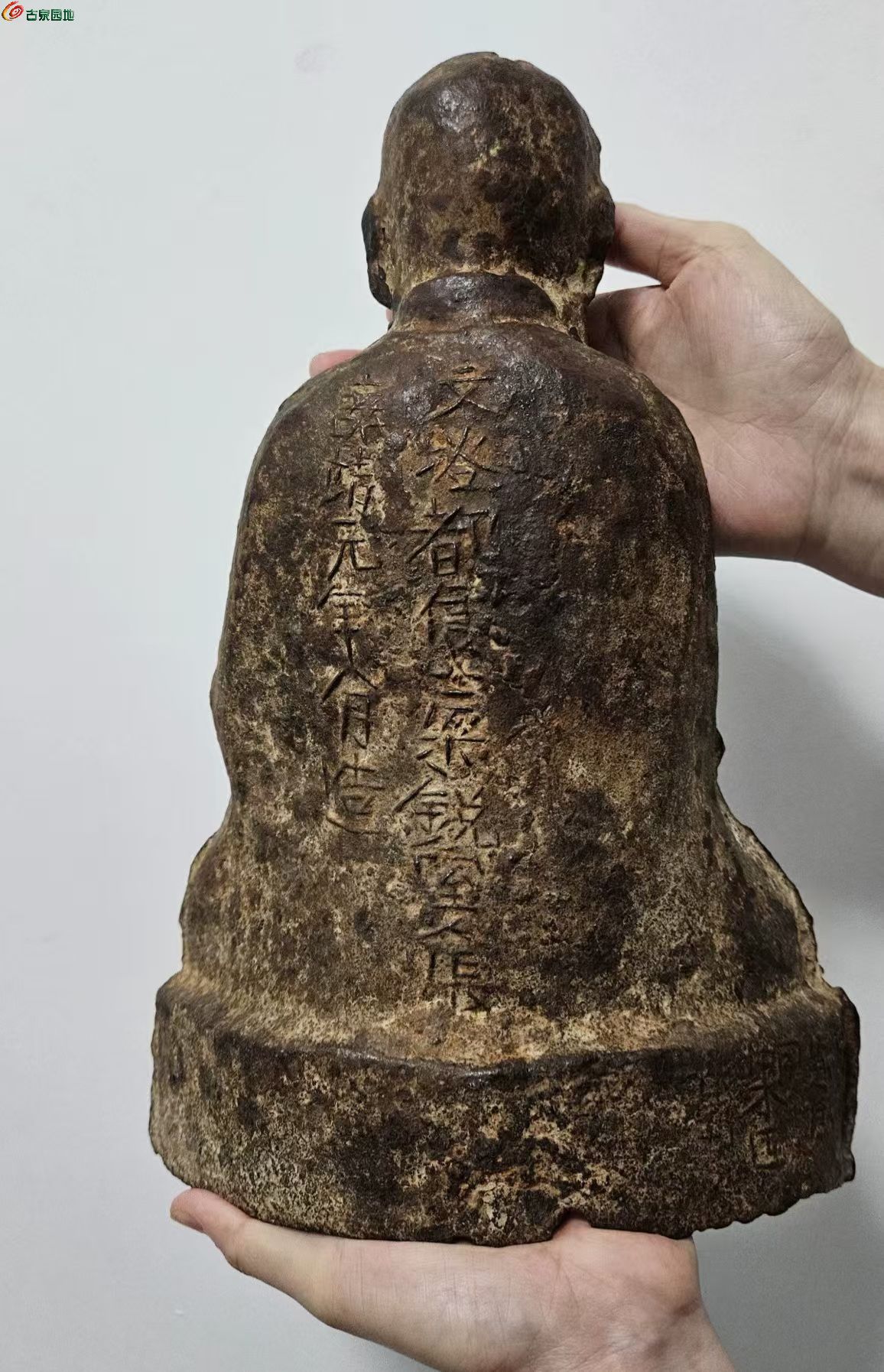 仿古铁像,铸造工艺不符,皮壳包浆不自然。