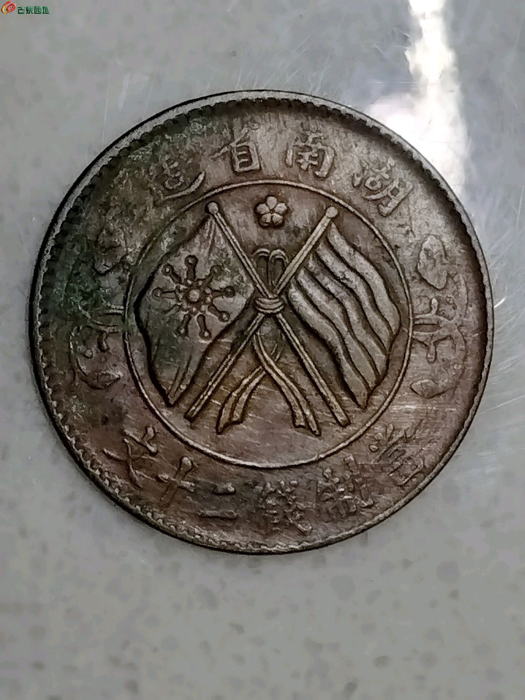 湖南省造双旗币梅花板,宽:32厘米,重:10.1克