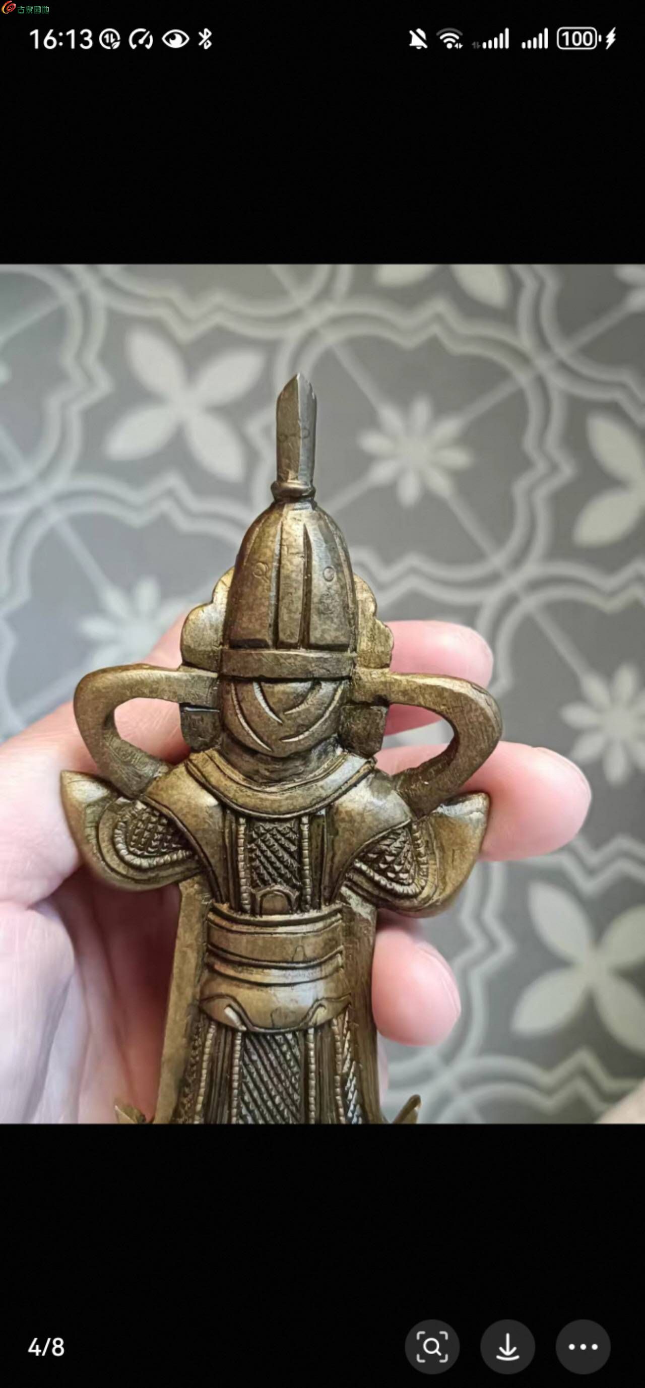 清代晚期韦陀铜造像,真品。